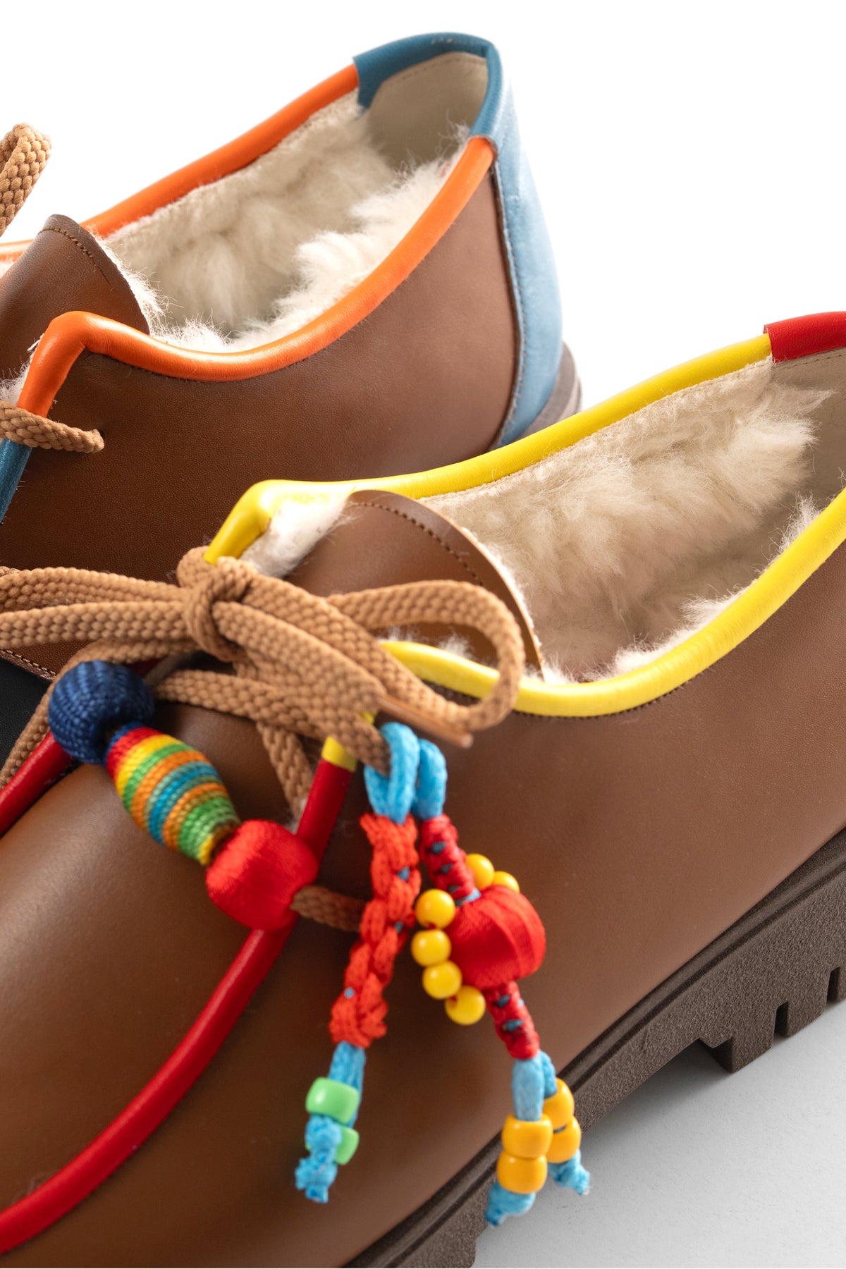 Meet Piñata, the pair designed to bring color, comfort, and pure good vibes to the chilliest months of the year. After a long lineup of samples (and a lot of obsessing over every tiny detail), we finally perfected a shoe that’s lightweight, durable, super comfy, and warm thanks to its soft faux fur lining. Think cozy, but make it fun. Handmade in Greece from buttery leather, this design is trimmed with bold pops of color and dressed up with our signature embellished details. Each pair comes with removable macramé charms, knotted one by one and finished with vintage sourced beads for that unique, collected-over-time feel.