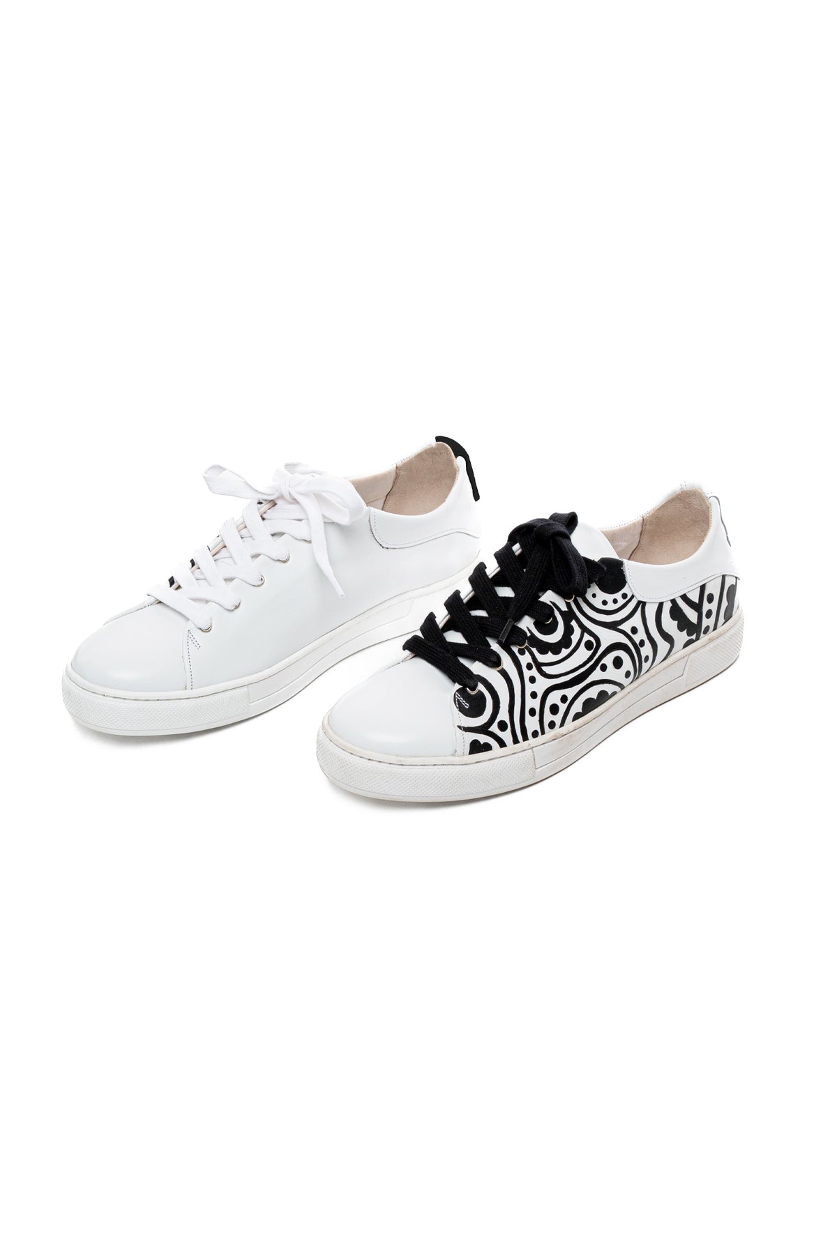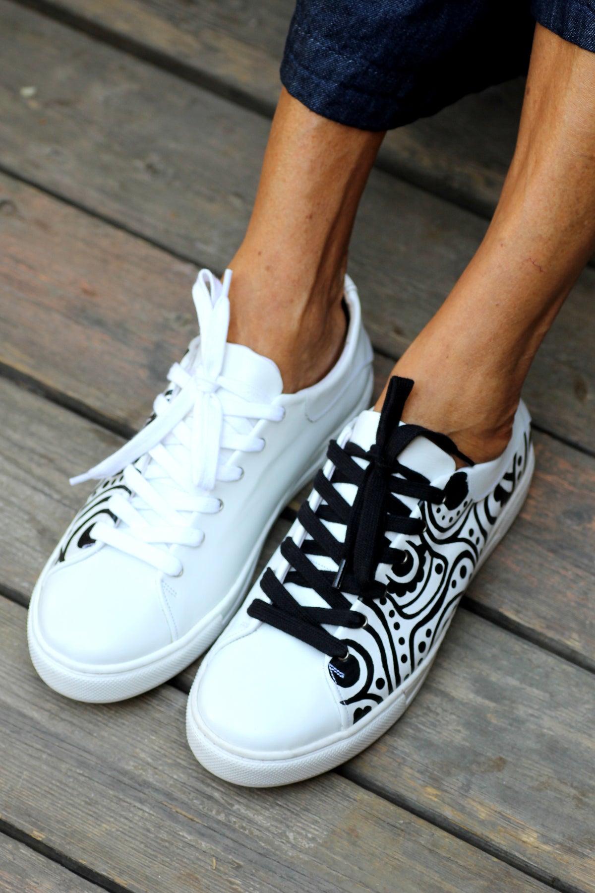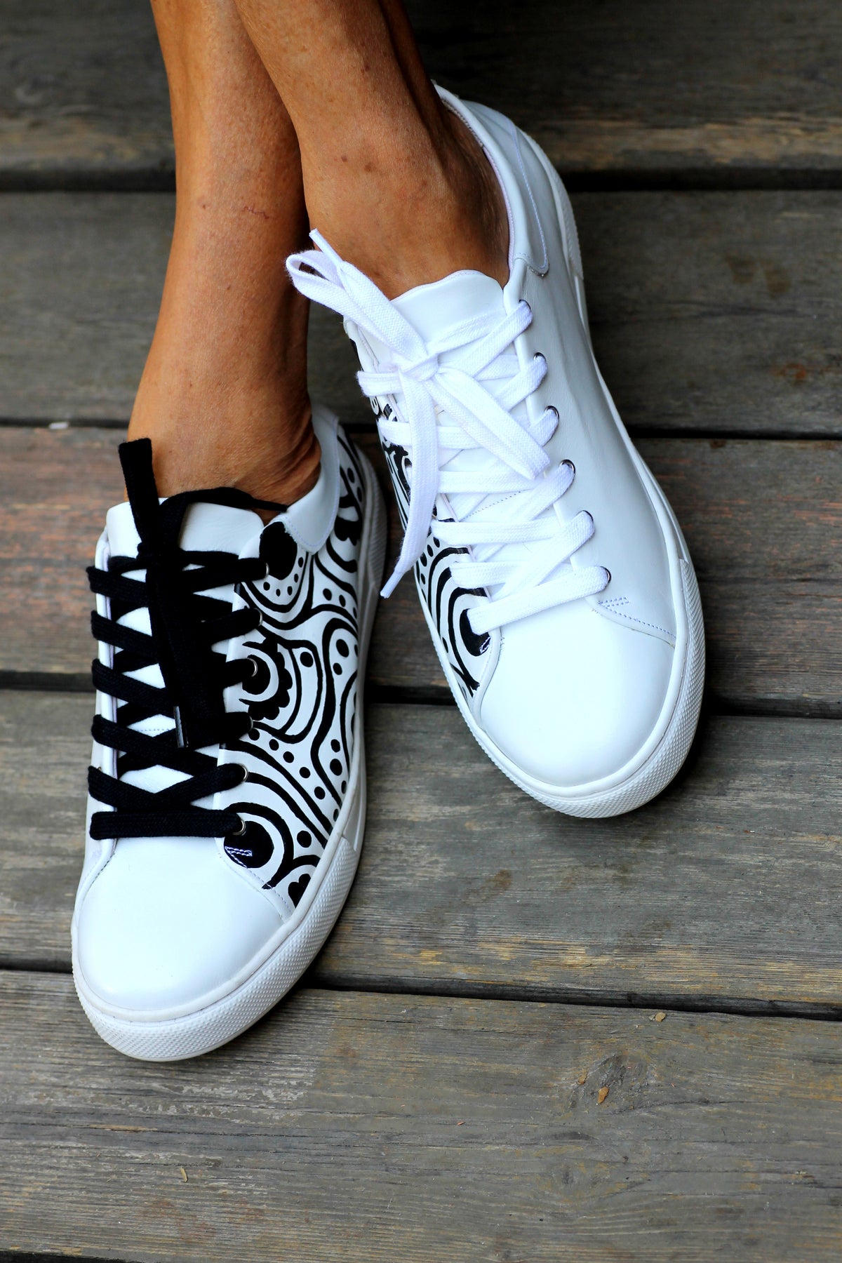 Named after the Japanese word for black, Kuro is a study in contrast and precision. It is made from soft buttery leather and hand painted with monochrome swirls and motifs, both graphic and fluid. Each pair is individually finished, balancing boldness with restraint.
