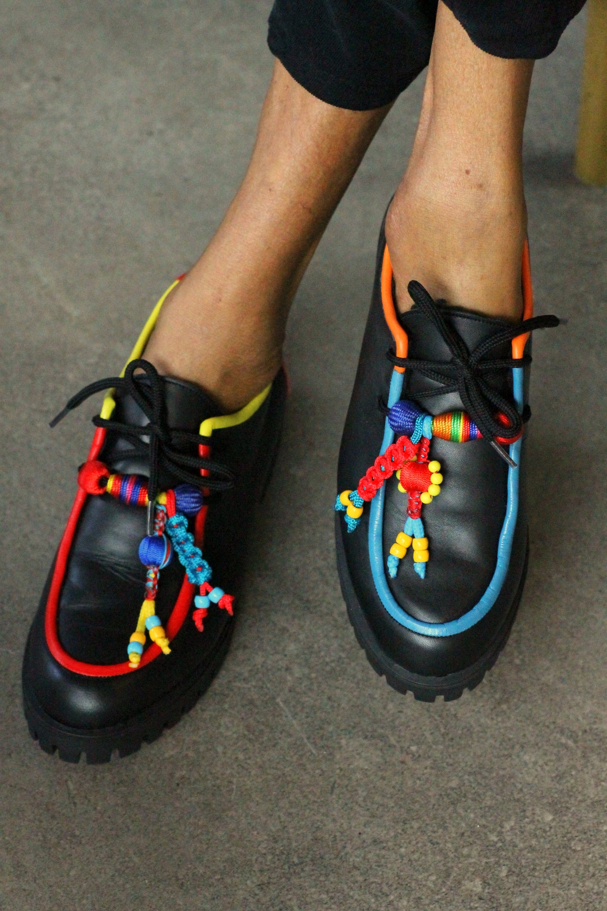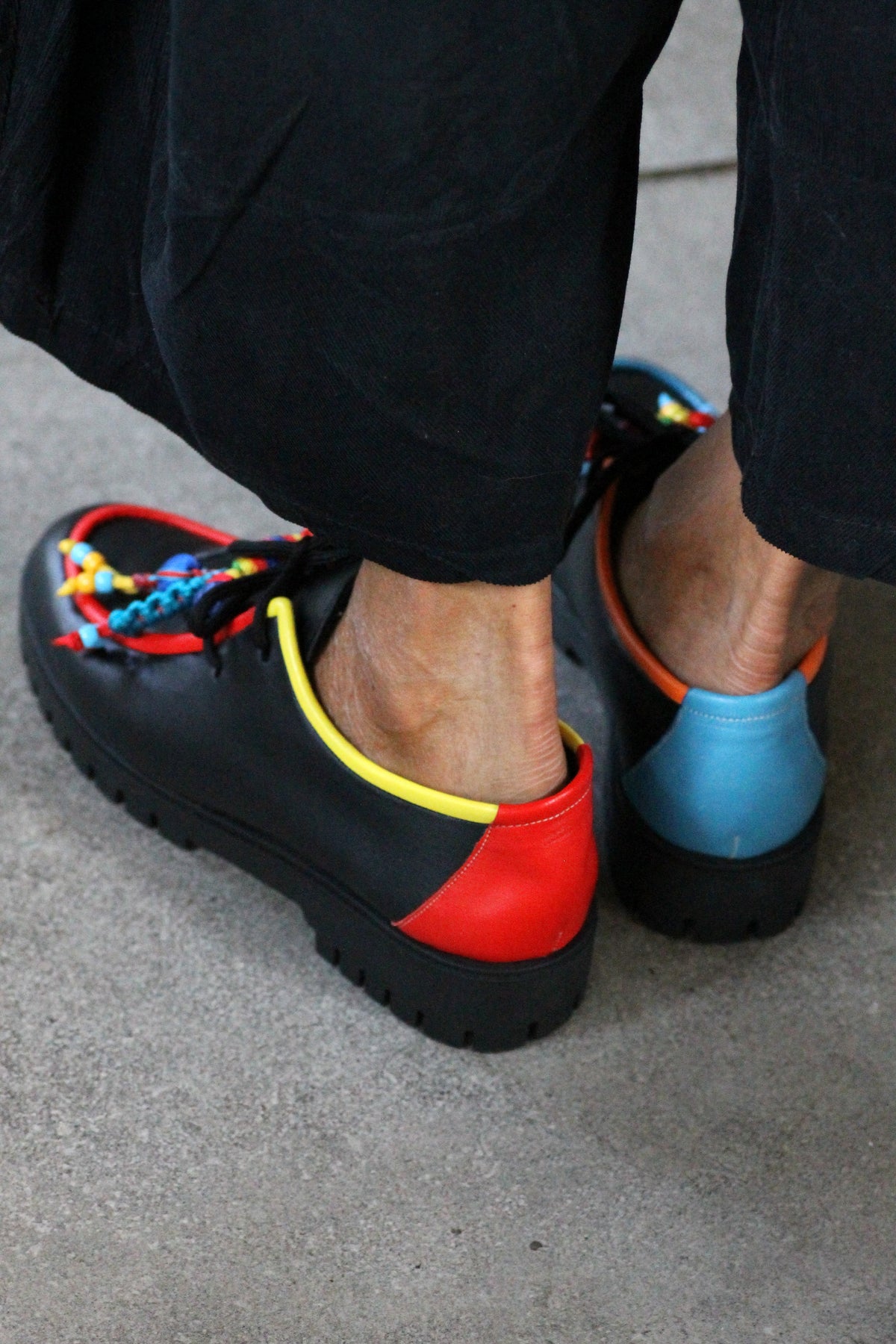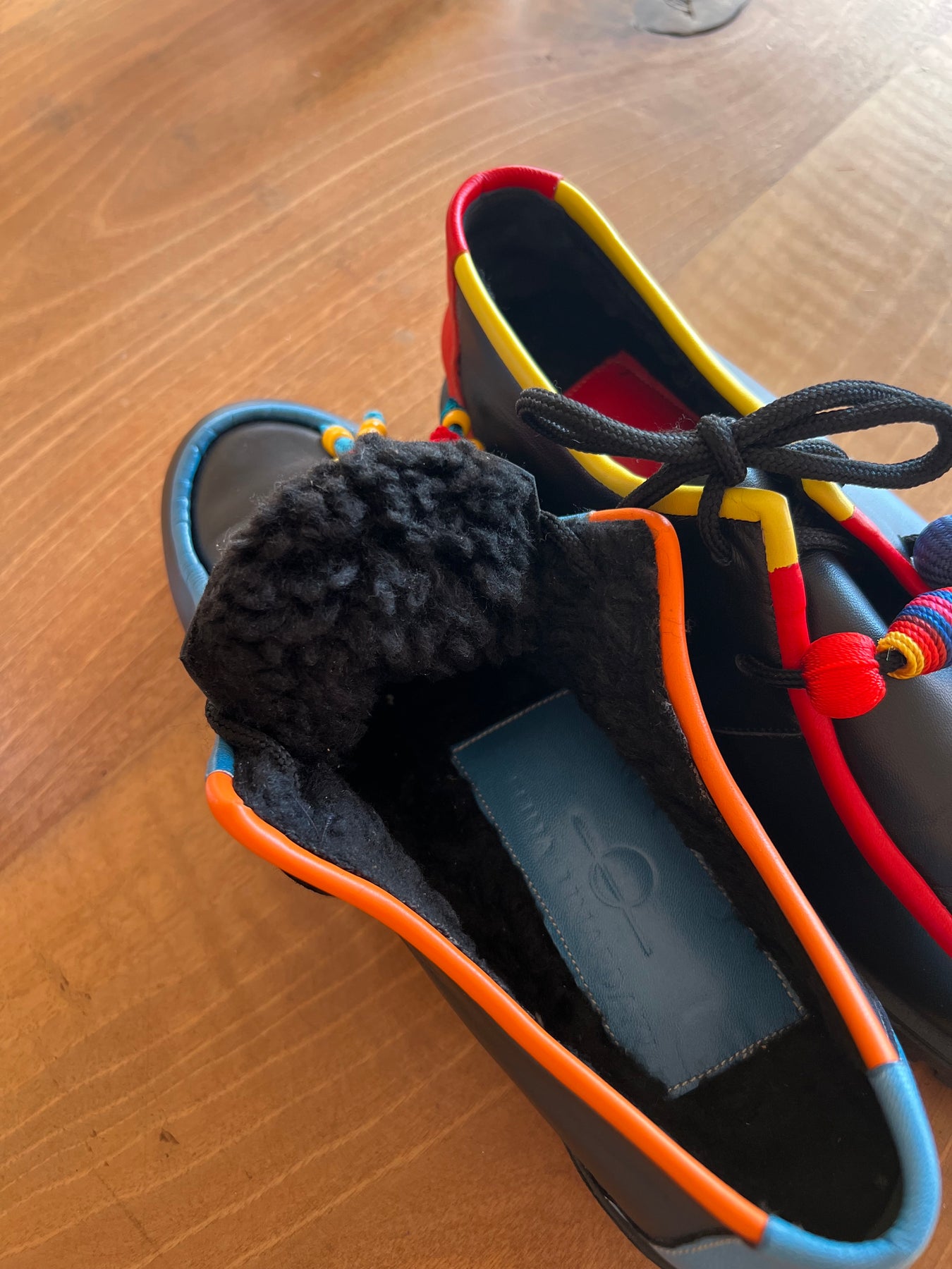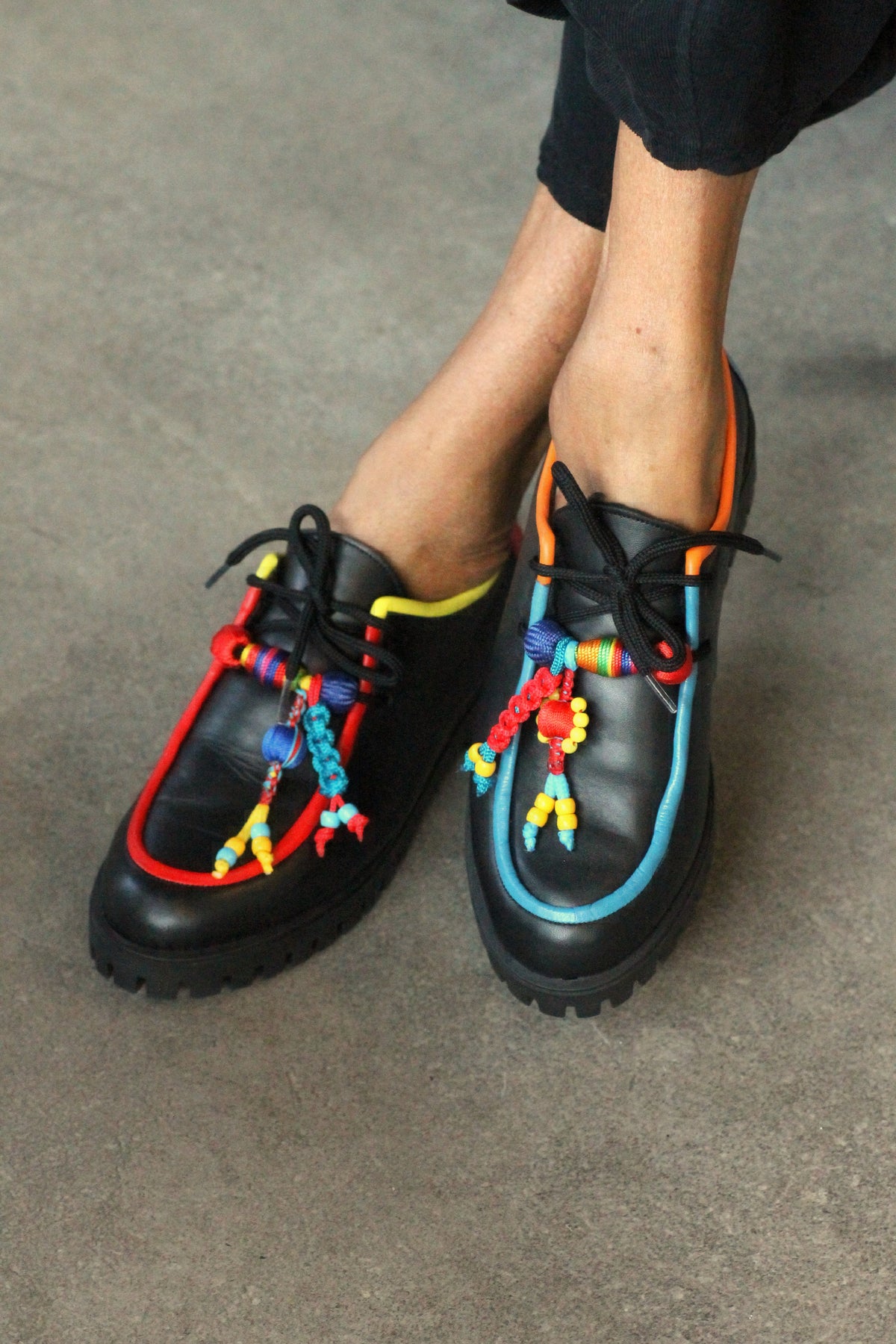 Meet Piñata, the pair designed to bring color, comfort, and pure good vibes to the chilliest months of the year. After a long lineup of samples (and a lot of obsessing over every tiny detail), we finally perfected a shoe that’s lightweight, durable, super comfy, and warm thanks to its soft faux fur lining. Think cozy, but make it fun. Handmade in Greece from buttery leather, this design is trimmed with bold pops of color and dressed up with our signature embellished details. Each pair comes with removable macramé charms, knotted one by one and finished with vintage sourced beads for that unique, collected-over-time feel.