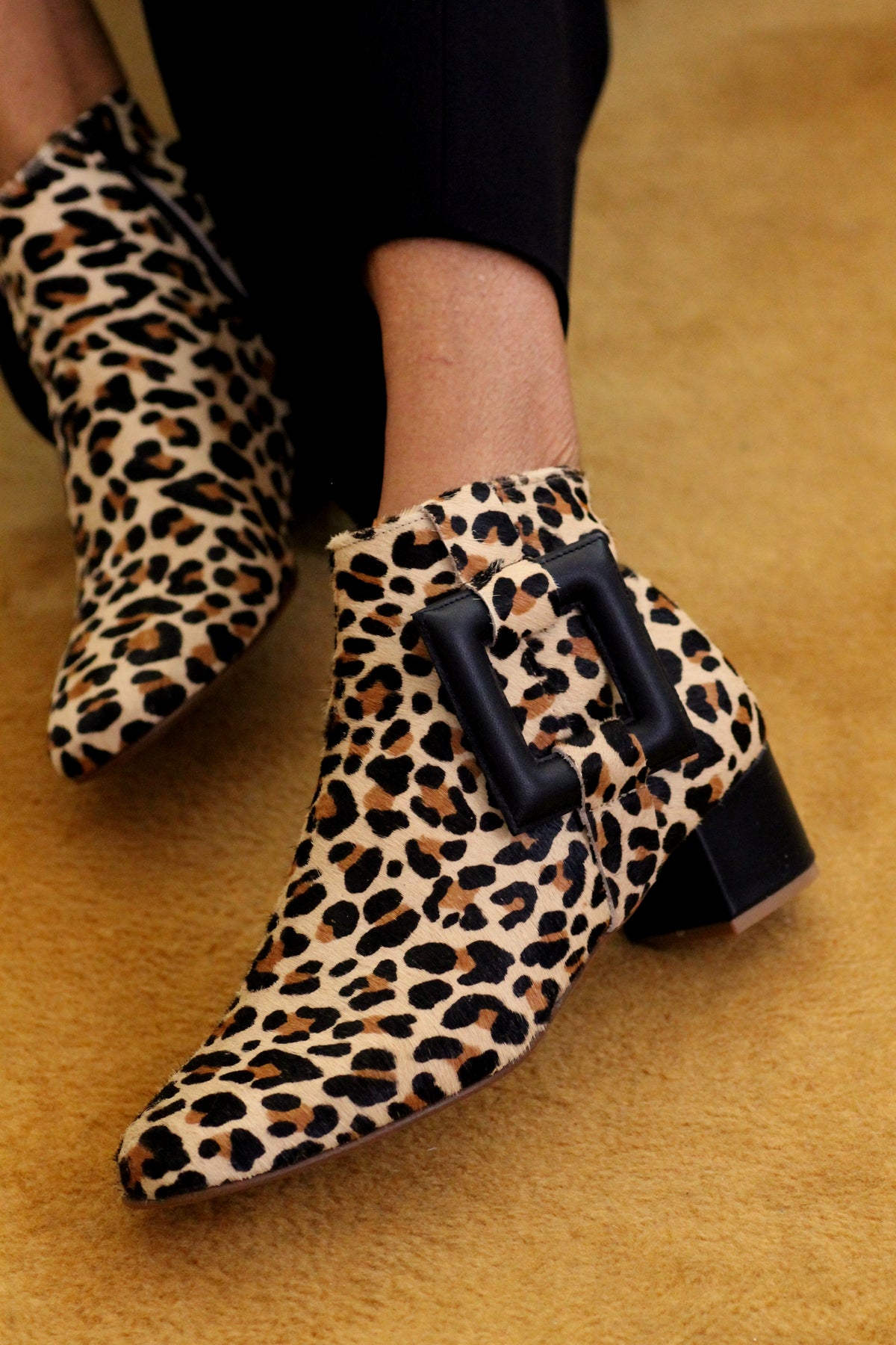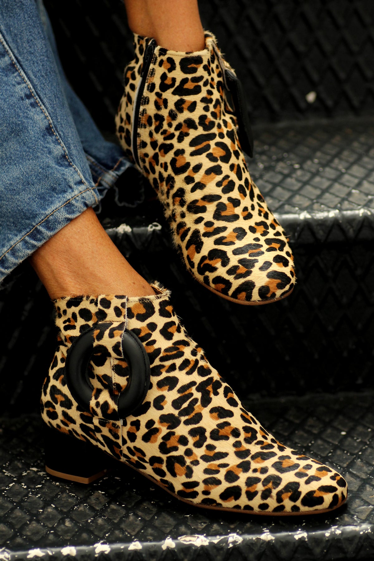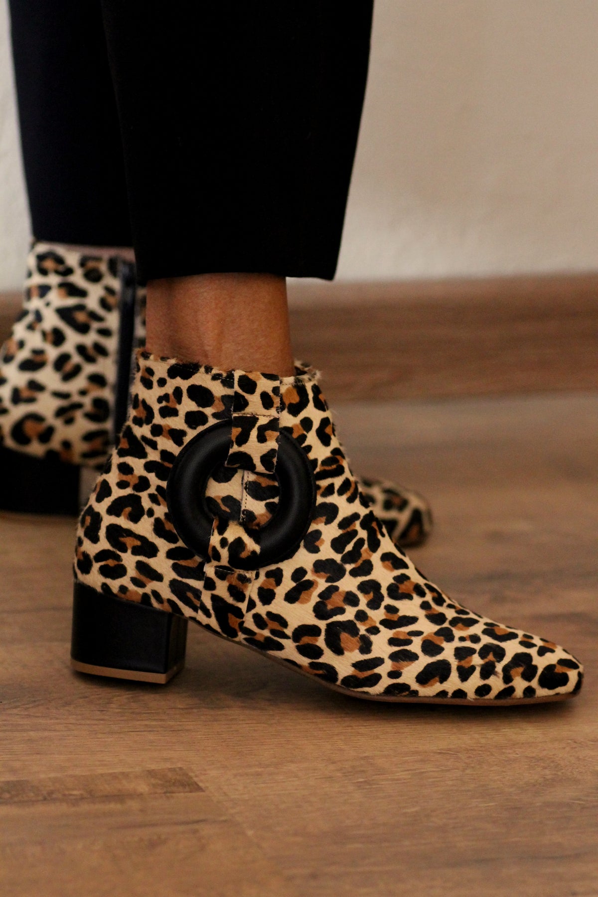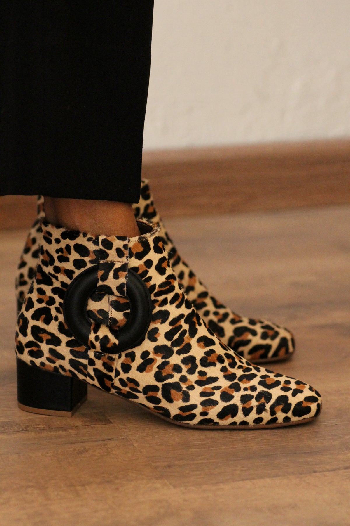 Fearless, iconic, and unapologetically bold, the Solace Boot in cowhide leather is the ultimate expression of confidence and individuality. Crafted entirely from premium cowhide leather, this standout ankle boot commands attention with its striking natural pattern and rich texture. Each pair is uniquely marked, making every boot a one-of-a-kind statement piece. The signature circle and rectangular motifs, finished in sleek black leather, create a powerful contrast that enhances the graphic appeal of the design. The structured block heel adds a modern edge while providing stability and all-day wearability. A padded insole ensures extra comfort without compromising on style.