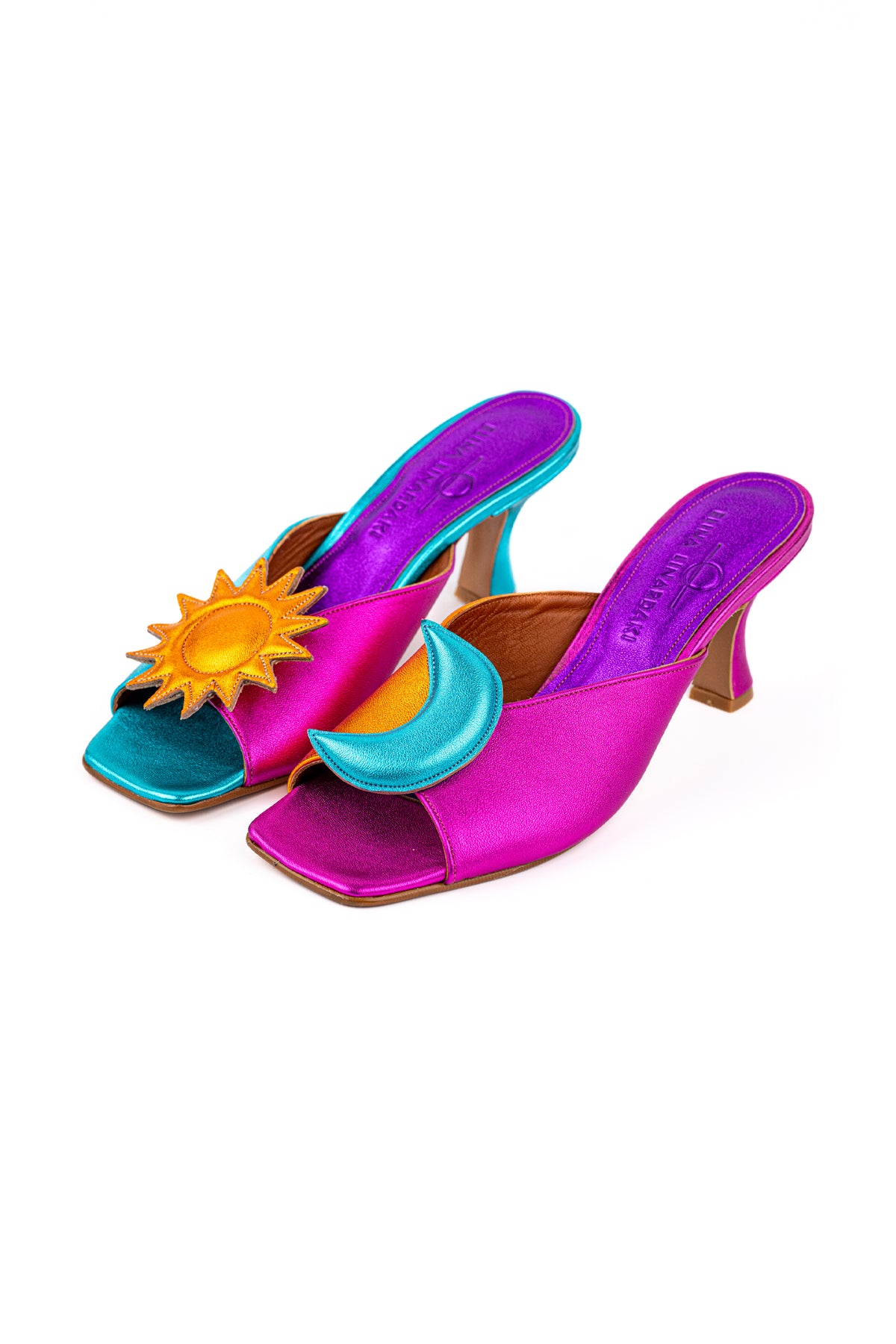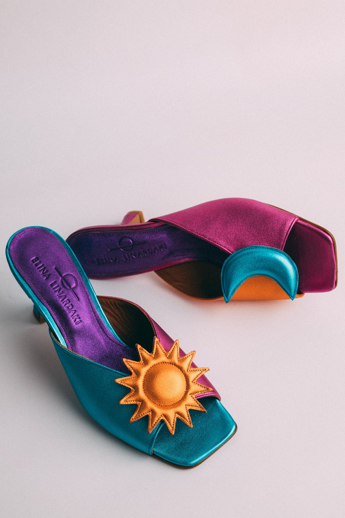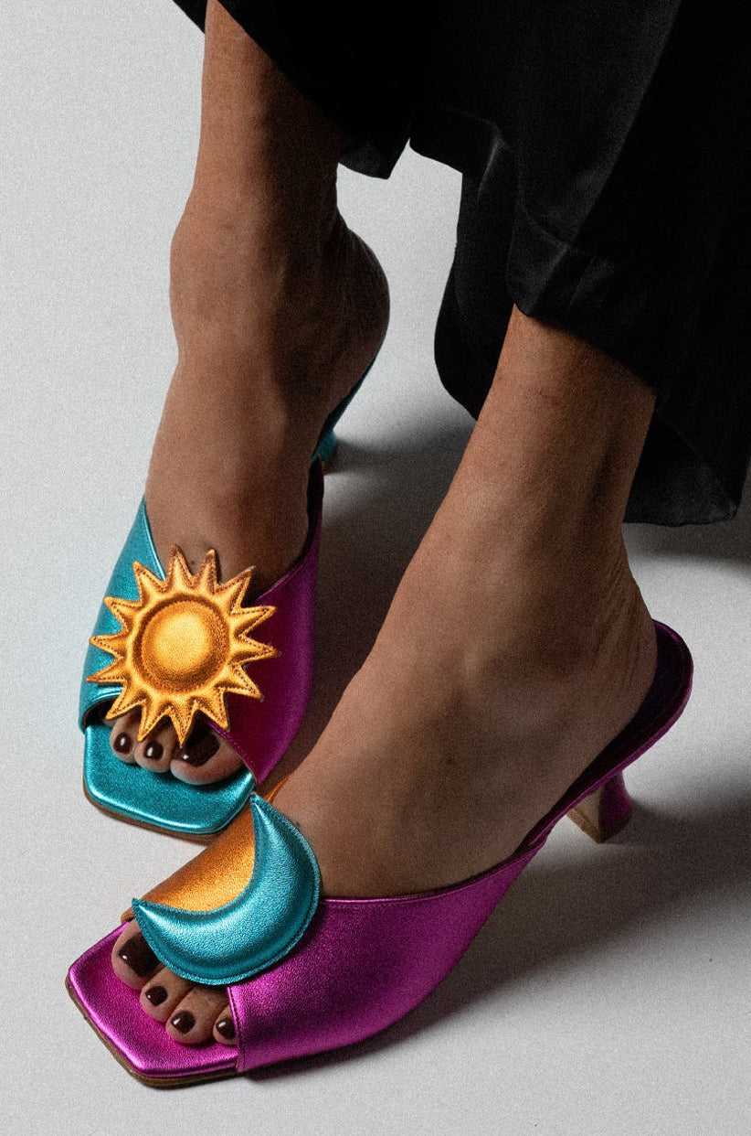 Crafted from luminous metallic leathers in radiant jewel tones, the Poet feels like a small celebration. A flash of fuchsia, a glow of turquoise, a golden sun catching the light,colors that feel almost celestial, as if day and night decided to dance together. The Poet heel was made for moments when a little elevation changes everything. Each pair is handcrafted in a family owned shoe factory in Athens, Greece, where generations of artisans continue to practice the art of slow shoemaking. The leathers are locally sourced and chosen for their softness and vibrancy, while the comfortable footbed ensures that beauty never comes at the expense of ease.The Poet Heel is a little piece of joy you can step into, a reminder that sometimes all it takes is the right pair of shoes to feel the world shift beneath your feet.